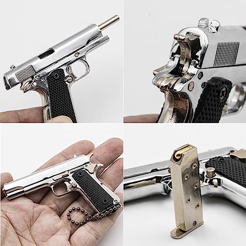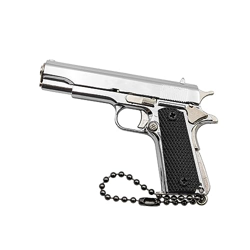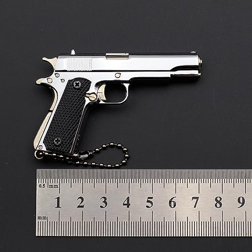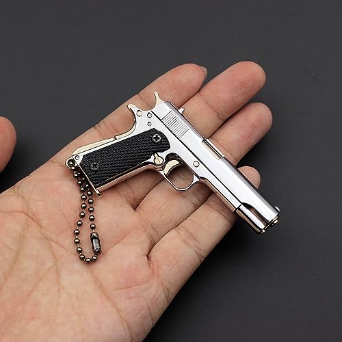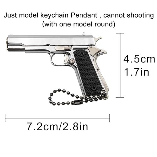 1911 Keychain Metal Mini Tactical Key chain Tiny Pendant for Ornament Collection Gift for Men Army Fan (Silver)