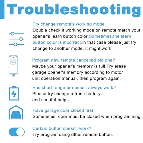 - Enhanced Security – Our garage door remote opener universal features the latest Billion Code/Security+/Security+ 2.0 rolling code technology, minimizing radio wave interference and boosting security. With a new security code generated every time the remote is used, it provides robust defense against potential intruders. Technology Controls Multiple Garage Doors at Multi-Frequency 310, 315, and 390 MHz