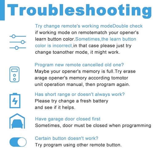 - Enhanced Security – Our garage door remote opener universal features the latest Billion Code/Security+/Security+ 2.0 rolling code technology, minimizing radio wave interference and boosting security. With a new security code generated every time the remote is used, it provides robust defense against potential intruders. Technology Controls Multiple Garage Doors at Multi-Frequency 310, 315, and 390 MHz