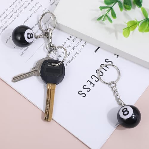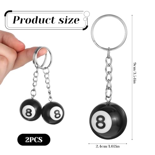 2 PCS 8 Ball Keychain Billiards Ball Keyring Creative Number 8 Automobile Keychains Key Chains for Key Accessories, Billiards Lover, Sports Souvenirs Practical Accessories Gift, 1in