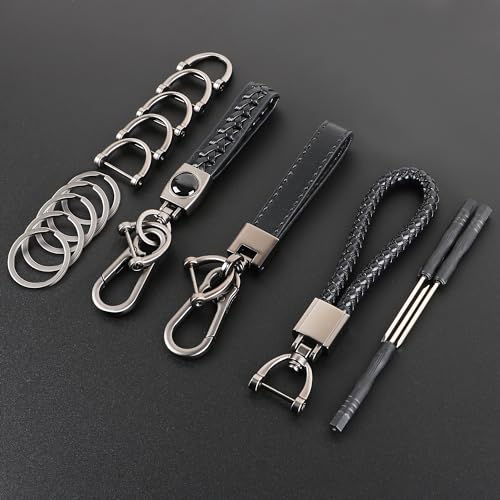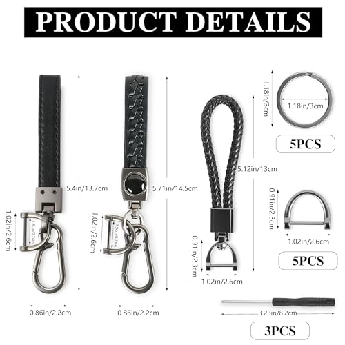 • Keychain Set–One order includes 1x Classic leather keychains, 1x wrist lanyard woven car keys keychain,1x hand braided rope car key chain,5pcs heavy duty key rings. 5pcs key chain ring for car keys fob and 3 PCS screwdriver.