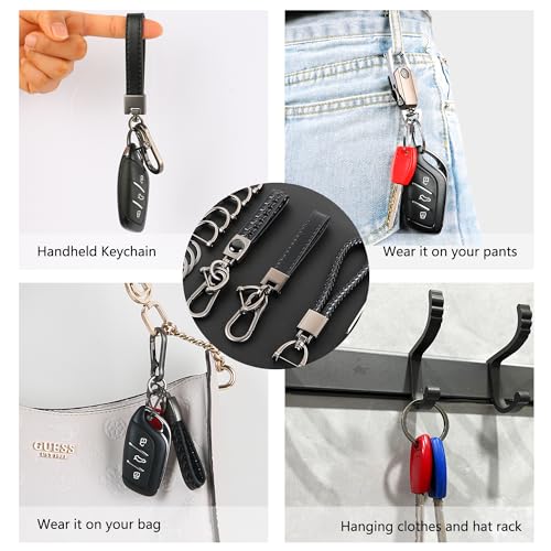 3 Pack Leather Keychain Universal Key Chains for Car Keys Woven Strap Braided Rope Leather Key Chain for Men Key Fob keychain Holder With 5 Keyrings,5 Anti-Lost D-Ring