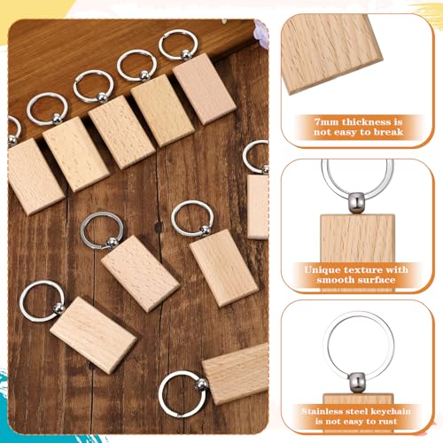 - 【Durable Material】Crafted from high-quality beech wood and sturdy metal key rings, these keychain blanks are built to last. The wood is resistant to breaking and deforming, while the metal rings ensure secure attachment. The smooth surface is ready for your creative designs, making them a reliable choice for long-term use