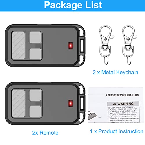 - 【2 packs】We prepared two garage door opener remotes for you so that you can still get "no waiting" roll-in access even if you lose one; You can also give one of the remotes to your family, when you take away the remote from home and your family is going to enter the garage, another remote will give them a hand. It’s the easy option for adding an extra remote to multi-car families or for replacing lost or broken remotes.