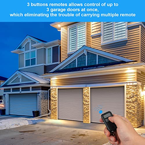 - 【Multichannel】3 buttons remote design allows control of up to 3 garage doors at once, which eliminating the trouble of carrying multiple remote. A detailed user manual is included to help you get set up in minutes. Easy to carry, Fits in purse, pocket or on a key chain.