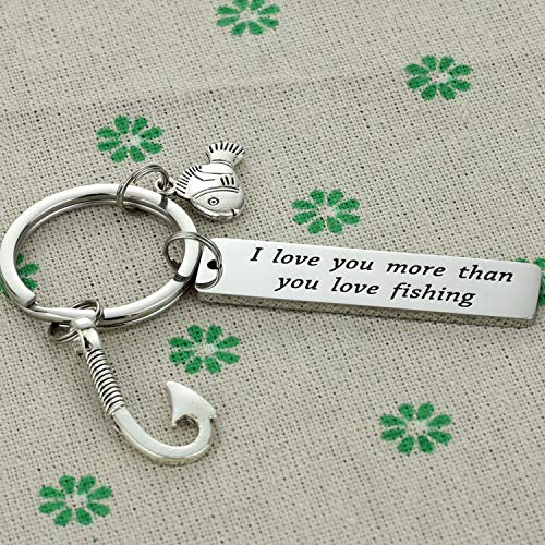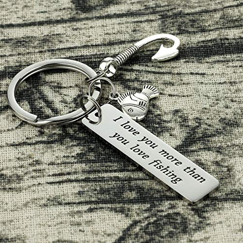 - đź’—đź’—đź’—đź’—đź’——Engraved with the sentence "I love you more than you love fishing". The fish keychain is a great way to give a special gift to the fishing fan in your life. It is best gifts to your groom, groomsmen, father, dad, grandpa, grandfather, daddy, husband and boyfriend. Perfect for daily wearing and any gift giving occasions.