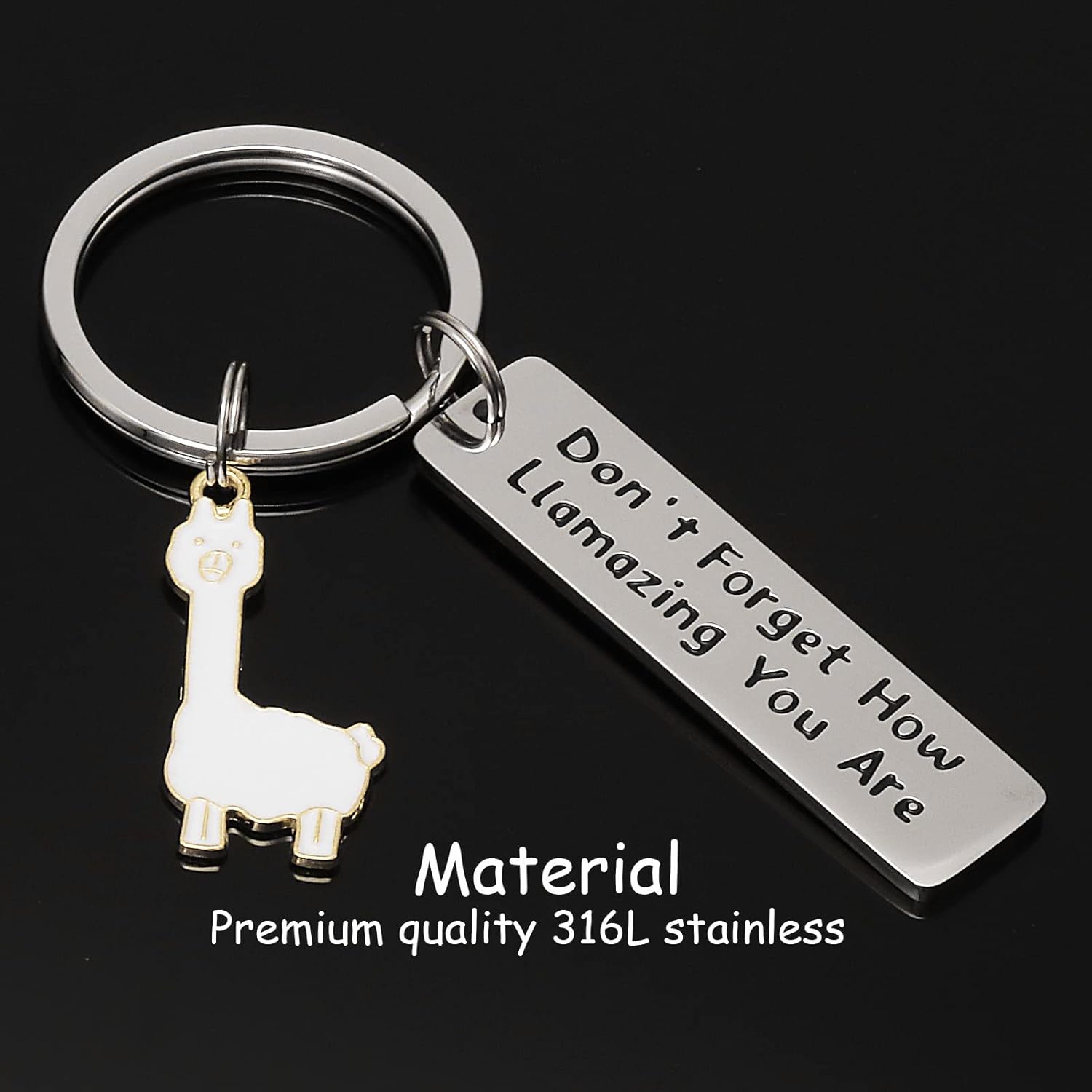 This adorable Llama Keychain is crafted from premium 316L stainless steel, making it a durable and stylish accessory for animal lovers. Engraved with the uplifting phrase “never forget how llamazing you are,” it serves as a daily reminder to embrace joy and fun in life. Perfect for everyday use or as a thoughtful gift for any occasion.