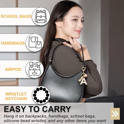 - 𝐃𝐈𝐕𝐄𝐑𝐒𝐈𝐓𝐘 𝐎𝐅 𝐒𝐓𝐘𝐋𝐄𝐒 𝐀𝐍𝐃 𝐂𝐎𝐋𝐎𝐑𝐒: We want customers to increase their ability to experience and diversify the styles of initial keychains for women. Our backpack keychain come in many colors, suitable for many preferences and moods of each user. Easily combine a variety of keys to enhance your beauty.