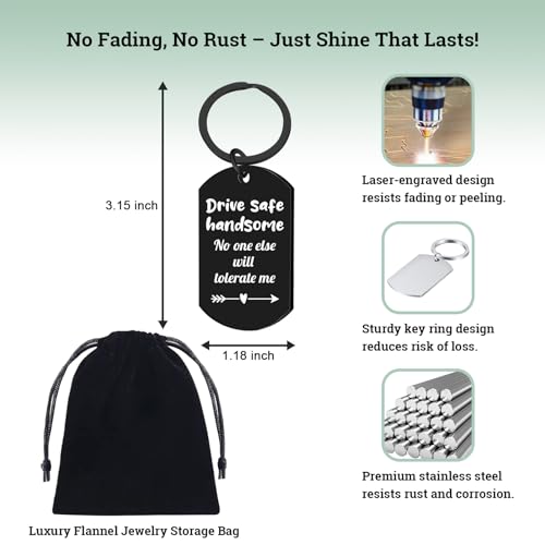 - POCKET YOUR MOMENTS IN METAL NOT DUST – This drive safe keychain for him is an ideal gifts for your loved ones. Whether for birthdays, holidays, or any special occasion, cool keychain with playful and inspiring text will infuse their daily lives with confidence and enthusiasm. Give family or friends this I love you keychain to brighten their day and bring a smile to their faces on important moments.
