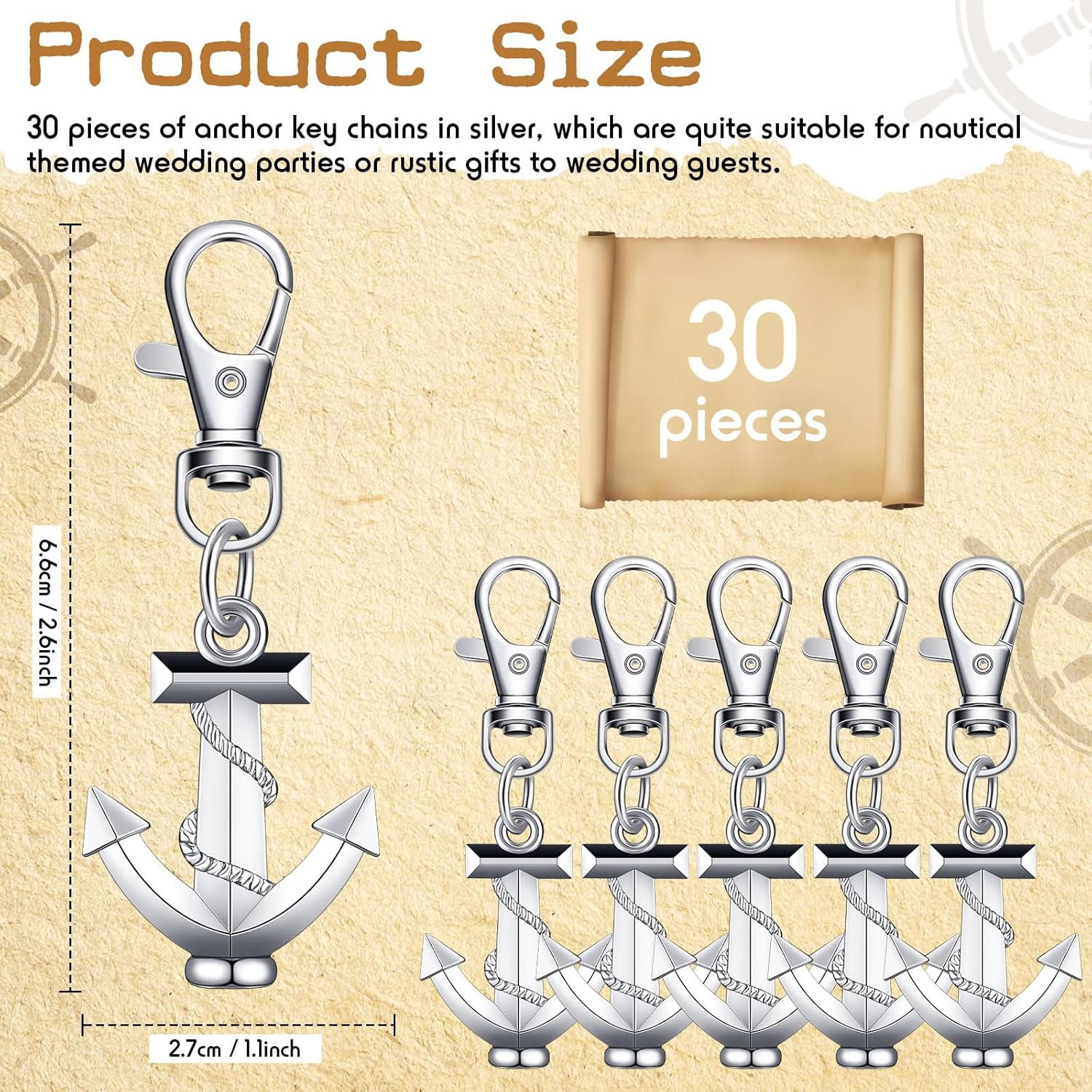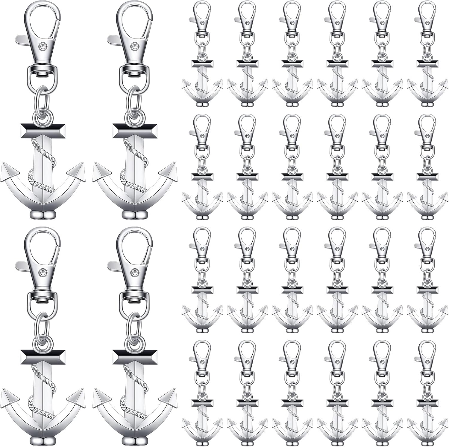 - Set of 30 high-quality silver anchor keychains
