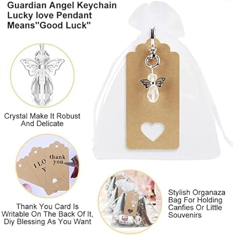 - 【What You Get】: 30pcs keychains with angel wings, 30pcs 4.7 x 3.9in white drawstring pouches bags, 30pcs kraft blank tags – enough for guest gift ideas and wedding decoration favors, great for guest gift ideas and decoration favors.