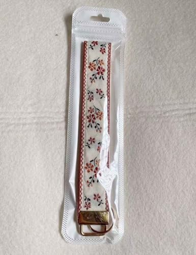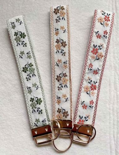 • SIZE: Each keychain measures approximately band's internal circumference 6.9", golden keyfob hardware. Embroidered vintage floral Neutral Key Fobs, Wristlet for Keys, Key Wristlet, Car Key Accessory.
