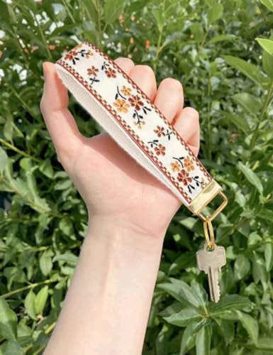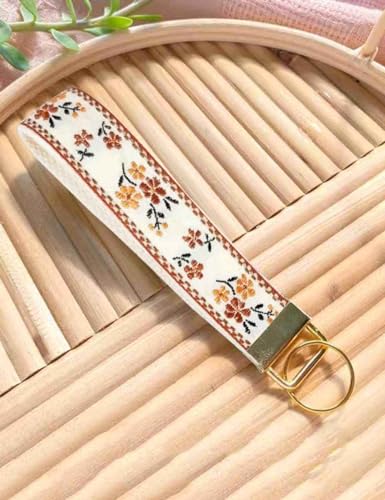• PREMIUM QUALITY: Crafted with high-quality embroidery vintage floral, boho style, our keychains are designed to last and withstand regular use. Materials: cotton embroidery webbing strap, cotton fabric, metal.