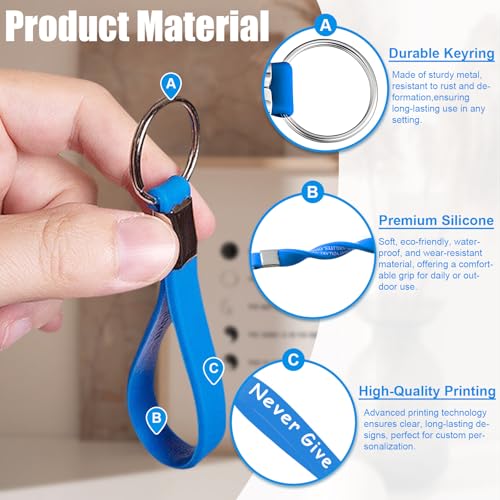 - Silicone keychain size: Width is 0.47 inch; Length: 4.72 inch. High quality metal key ring and silicone lanyard enable your keychain to withstand longer wear k, which is convenient for you to hang the keychain on your bag, mobile phone, etc., and will not fall.