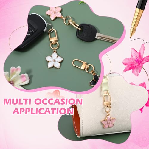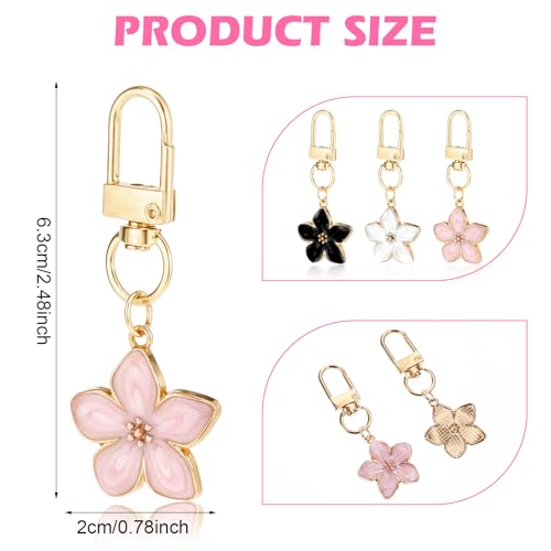 Bruislard Mini Flower keychains for Women, 3Pcs Cute Handbag Key Chain, Aesthetic Keychain Charms, Personalized Key Ring, Cherry Blossom Zipper Pull Charm(Black, White, Pink)