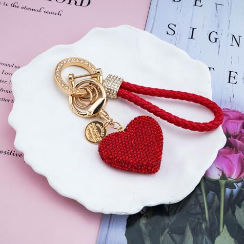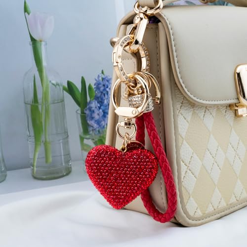 Cute Heart Keychain Red Wristlet Keychains For Women Girls Bling Key Chain Rhinestone Key Chains For Car Keys Purse Charms Handbag Backpack Accessories Rhinestone Keychain Sparkly