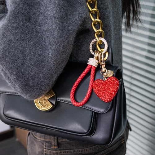 • Bling Keychains For Women- Heart Crystal Rhinestone Keychains Are Made Of High Quality Rhinestones, Woven Leather And Alloy Metal Keychains. The Crystal Heart Key Chain Set, Which Includes The Key Chain, Keyring, Woven Leather , And Screwdriver, Allowing You To DIY Your Own Car Key Holder. It's Stylish,Pretty And Sparkly! You'Re Gonna Love It!