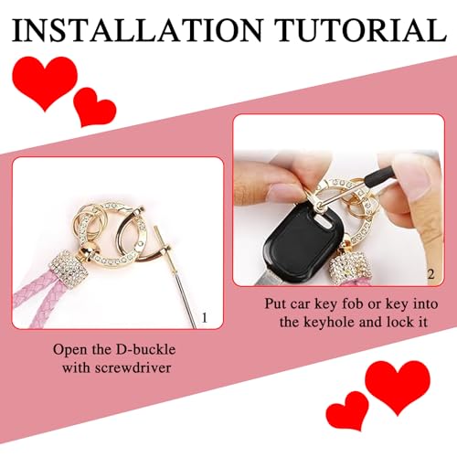 • Bling Keychains For Women- Heart Crystal Rhinestone Keychains Are Made Of High Quality Rhinestones, Woven Leather And Alloy Metal Keychains. The Crystal Heart Key Chain Set, Which Includes The Key Chain, Keyring, Woven Leather , And Screwdriver, Allowing You To DIY Your Own Car Key Holder. It's Stylish,Pretty And Sparkly! You'Re Gonna Love It!