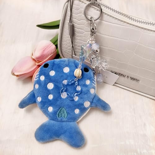 - Cute Keychain Whale Shark Coin Purse Keychain,Kawaii Plush Change Purse with Zipper Aesthetic Key Chain,Handmade Bag Charms for Women Girls Gift