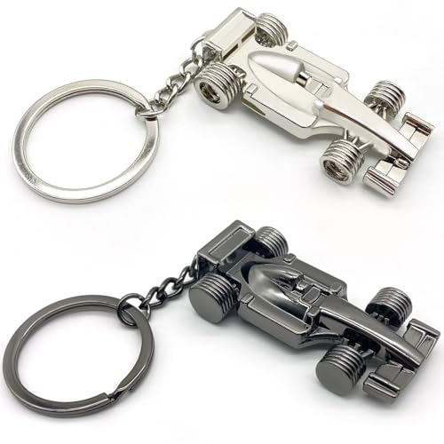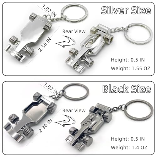 cuttnell F1 Keychain (2-Pack Silver & Black), Cool 3D Metal Racing Model Keychain for Gifts for Yourself or Your Boyfriend, Husband, Father, Driver and All Fans Who Love F1 & Formula One