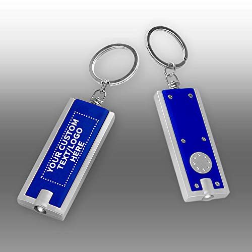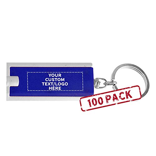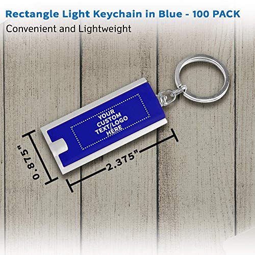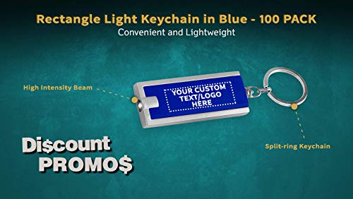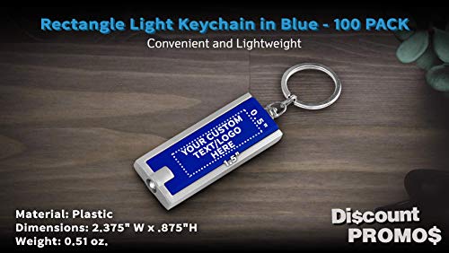 DISCOUNT PROMOS 100 Flashlight Keychains Pack – Customizable Text, Logo – Rectangle, Plastic – Blue