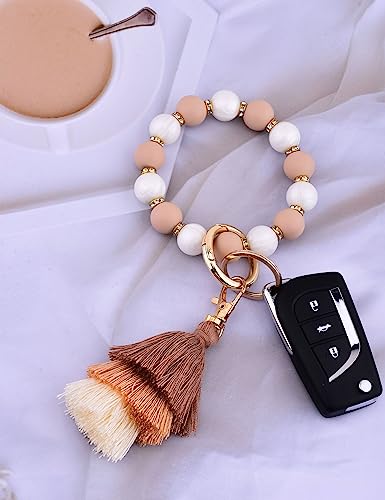 - 【Free Your Hands】:Losing car and house keys when you are outside, or searching in your pocket for keys when your hands are full,Is it very upset? Me too! With our oatmeal silicone bead bracelet key chain are saving your headaches , keeping your keys and get your hands free .Stop searching and buy this silicone key ring bracelet, you will never lose your keys anymore.