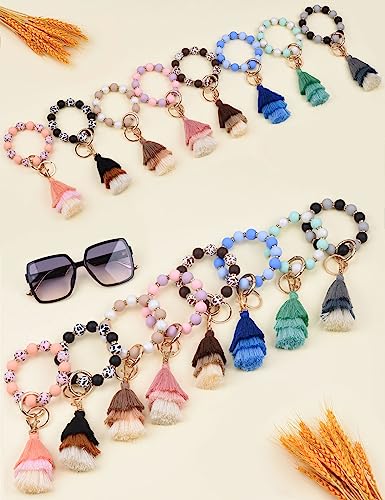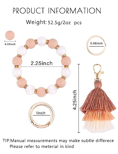 - 【Detachable and Multi-functional】:You get one solid rings and one that opens up .Can't be more fascinated by this super cute, soft bracelet key chain,it can be wear together whenever, or you can easy take off the metal key and tassel, then only wear beaded bracelet keychain on your wrist , the cotton thread tassel can be used to decorate bags or pendants.It even as a stress relief bracelet as well, Playing around with those silicone balls help people relax honestly.