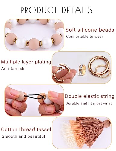 - 【Good Quality and Stylish】:Wristlet keychains for women is made of high quality, non-toxic, odorless, BPA free silicone beads , which makes it super comfortable. You don't need to choose between practicality and aesthetics, all the beads are threaded together with a double-stranded cord, which is very durable. The high-quality silicone beads will not fade, and can keep the bright color for a long time.