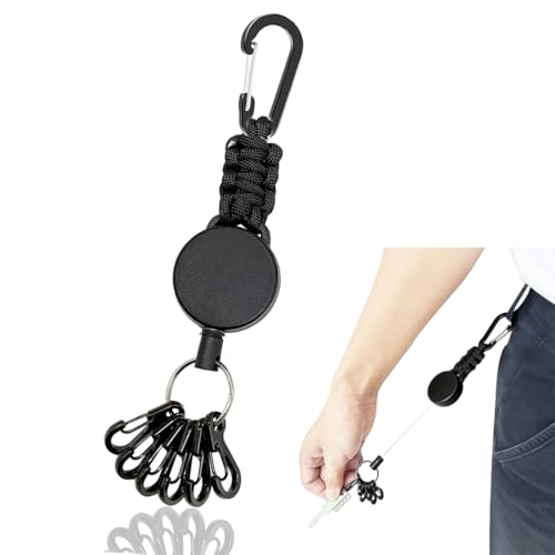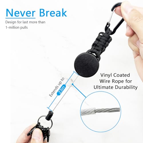EFFIET Heavy Duty Retractable Key Holder Key Ring with 6pcs Mini SF Alloy Carabiner Clip, ID Badge Clip Reel with Steel Cord, Clasps for Janitor Office Work, Bearing 8.0 oz