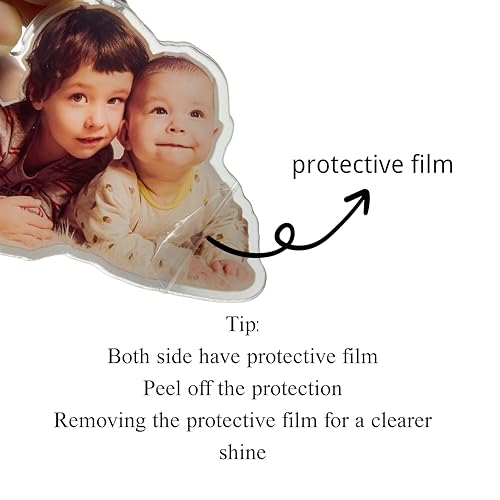 - ✨ PERSONALIZED PHOTO ACRYLIC KEYCHAIN 🌟 Custom shaped picture keychain with your picture, logo or anime character and more. We will make your lively and interesting keychain based on the shape of the person or pet in the photo. Note! There is a protective film on the surface of the keychain. You need to tear off this film before using it so that the image can be displayed in high definition.