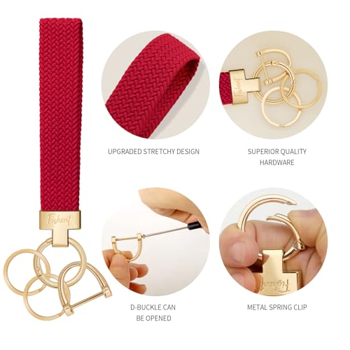 Fishent Stretchy Wristlet Keychain, Cute Key Chain, Woven Wrist Lanyard for Car Keys with 3 Keyrings and D-ring for Women Men