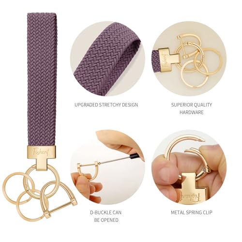 Fishent Stretchy Wristlet Keychain, Cute Key Chain, Woven Wrist Lanyard for Car Keys with 3 Keyrings and D-ring for Women Men