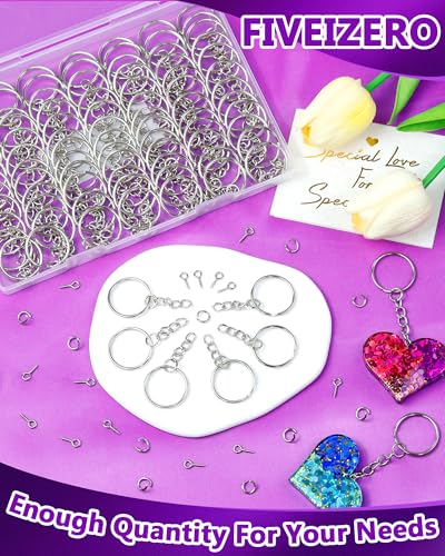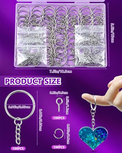 - Complete Kit Included: You will receive 100 key rings with chain, 100 small screw eye pins, and 100 open jump rings. The small screw eye pins and open jump rings are securely sealed in small plastic bags and stored in a transparent plastic box alongside the key chain rings, ensuring convenient access to your keychain making supplies.