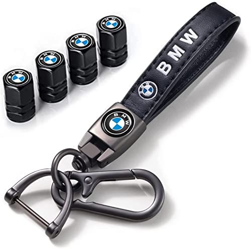 for BMW Keychain, Alloy Valve Stem Caps and Car Keyring Combo Compatible with BMW 1 3 5 6 Serie X1 X3 X7 X5 X6 Z4 7 M Series, Black