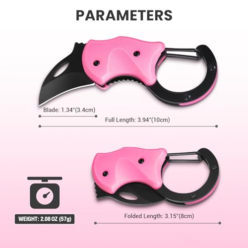 - Lightweight and Portable: Measuring at a compact 3.94 inches in length and weighing just 2 ounces, this mini box cutter opener fits perfectly in your palm. Its small size and convenient foldable design make it the ideal carabiner keychain for women everyday carry.