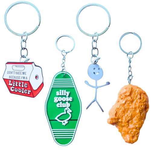 Funny Keychains Keychain Set Fun Cute Weird Cool Little Cooler Silly Goose Fried Chicken Nugget Food Black Cat Knife Doodle Finger Funky Unique for Adults Men Women Small Novelty Gag Gifts