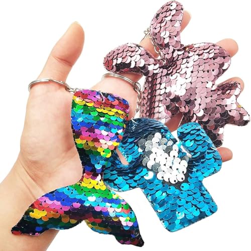 • VIBRANT SEQUIN KEYCHAINS: Including 15pcs nicely selected sequin keychains in different styles, no duplicates. Styles include mermaid, unicorn, turtle, whale, bunny, butterfly, cat, dog and flamingo etc. Adorable shapes and glittering vibrant color is so attractive that all girls will be impressed and add sparkle to their backpacks or keyrings.