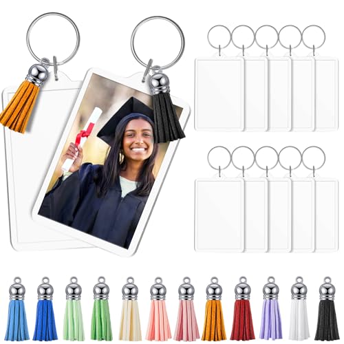 - Rich Combination: you will get 12 clear acrylic keychain blanks and 12 tassel charms, enough for your daily use and replacement; They are well packaged to prevent them from breaking in transit