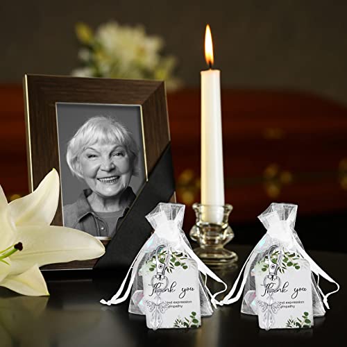 • Large in Quantities: you will be provided with 60 sets of funeral favors, including 60 pieces of angel keychains, 60 pieces of organza gift bags and 60 pieces of thank you funeral tags, which are sufficient for the funeral party use needs