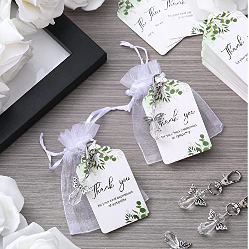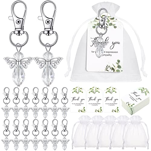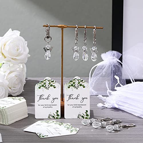 Hicarer 60 Set Funeral Favors, Celebration of Life Favors Angel Keychains Organza Bags Sympathy Thank You Tags for Memorial Party Supplies Guest Return Favors Funeral Gifts