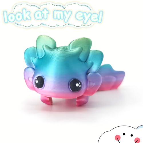 - Material: 3d printed axolotl are made with Silk Rainbow PLA, which is a Plant-Based plastic and mainly derived from renewable resources such as corn starch or sugar cane.
