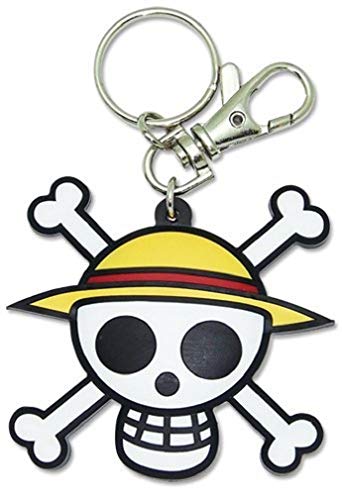 HLXFF3 One Piece: Pvc Keychain Luffy’s Jolly Roger Straw Hat Pirates Logo