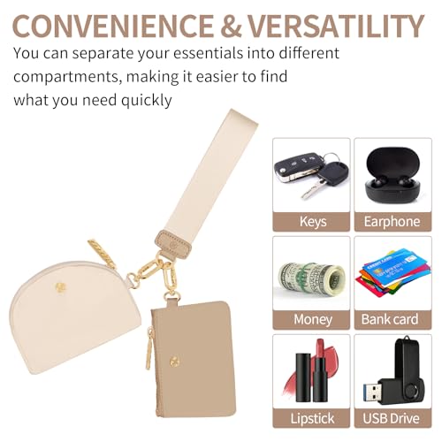 - 3-in-1 Wristlet Wallet: The wristlet length is 7.09 inches with detachable dual pouch square wallet(4.53 x 3.15 IN) and a semi-circular wallet(4.33 x 3.74 IN). You can easily keep your keys and essential cards together, minimizing the risk of misplacing or losing them