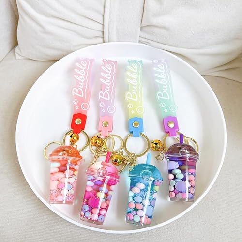 - Lovely Design: The fresh bubble tea theme moving sand bottle design makes the keychain very cute and interesting. The milk tea cup will bring you good luck. The moving sand inside makes you feel relax. The keychain is luminous that can shine in dark. Good choice for daily use or gift for any occasion.