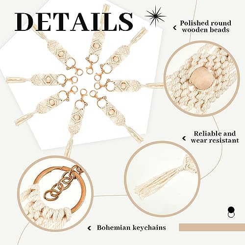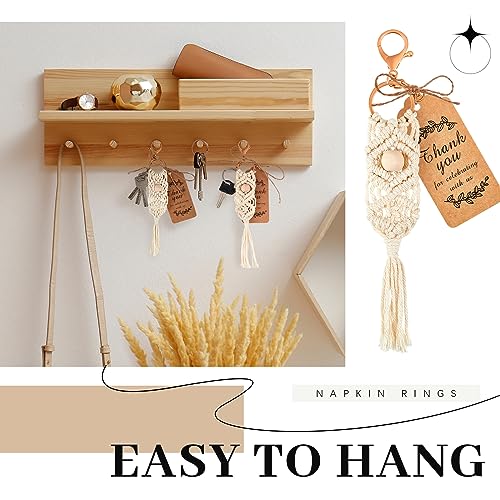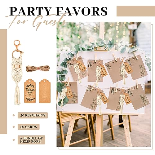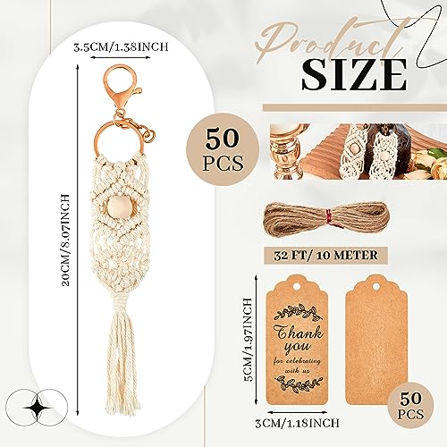 - Nice Set: the package comes with 50 pieces of macrame keychains, beautiful and elegant; 50 pieces of kraft thank you tags, about 1.97 x 1.18 inches/ 5 x 3 cm, with 32.81 ft/ 10 m hemp rope, enough quantities and exquisite appearance combinations make it sufficient for meeting your various decoration demands or share with others. Note: hand woven, the length of tassels is not fixed, you can cut the tassels to the length you want