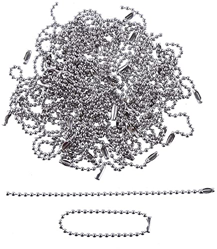 H&W 100pcs 4 inch Bead Chains Connector Clasp, Stainless Steel Ball Chain Keychain Tag Key Rings,1/10 inch Diameter Adjustable Antiqued Metal Bead Steel Chain for Jewelry Finding Making Accessories