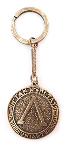 IconsGr Key Ring Ancient Spartan Battle Helmet Coin Shield Keychain Movie 300 Gold