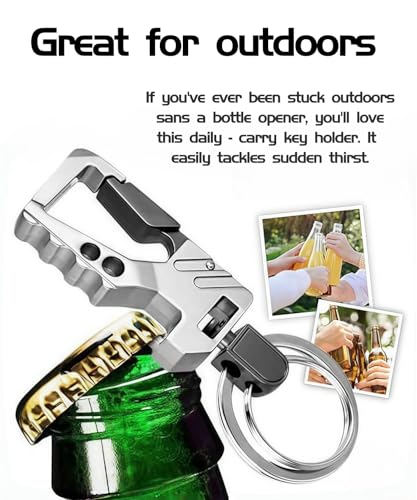 - Features: The keychain bottle opener easily opens your bottle caps. Additionally, there are 2 holes on the keychain to add 2 extra key rings, helping you keep your keys organized.