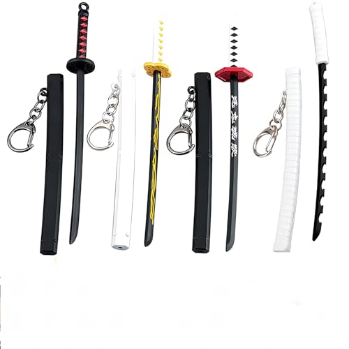 ixampoun 4ps Mini Toy Katana Keychain, Metal Model Sword With Pull Out Best Gift For Anime Lovers Samurai Sword Game Series Sword Party Supplies Gift Keychain for Anime Fans