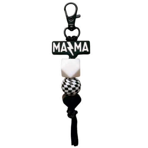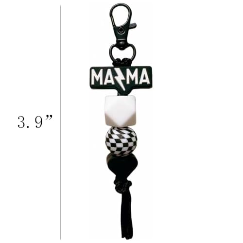 - This mama keychain combines a chic black and white chessboard pattern with silicone beads, making it a fashionable and practical accessory for moms.